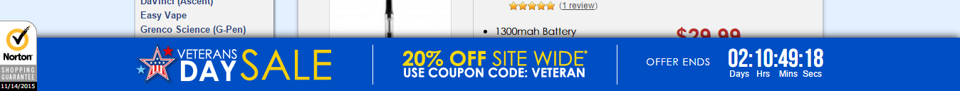 Floating Count Down Banner- Please see Vapor Nation to check out the floating banner that has a countdown on specific store wide savings and different offers depending what they promote throughout the holidays.