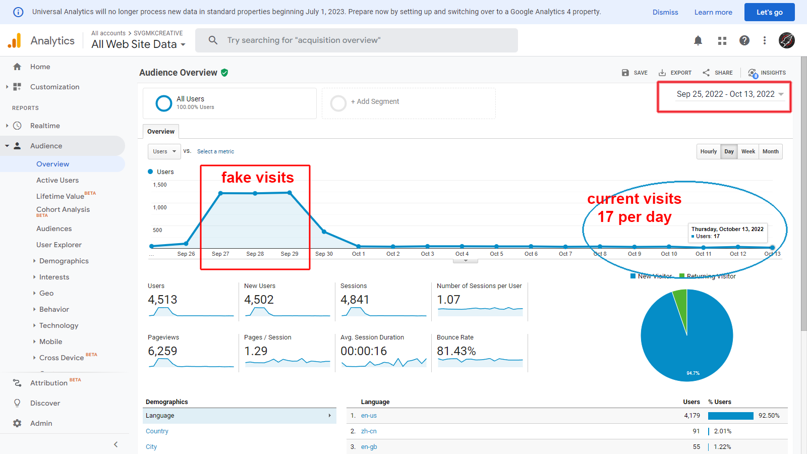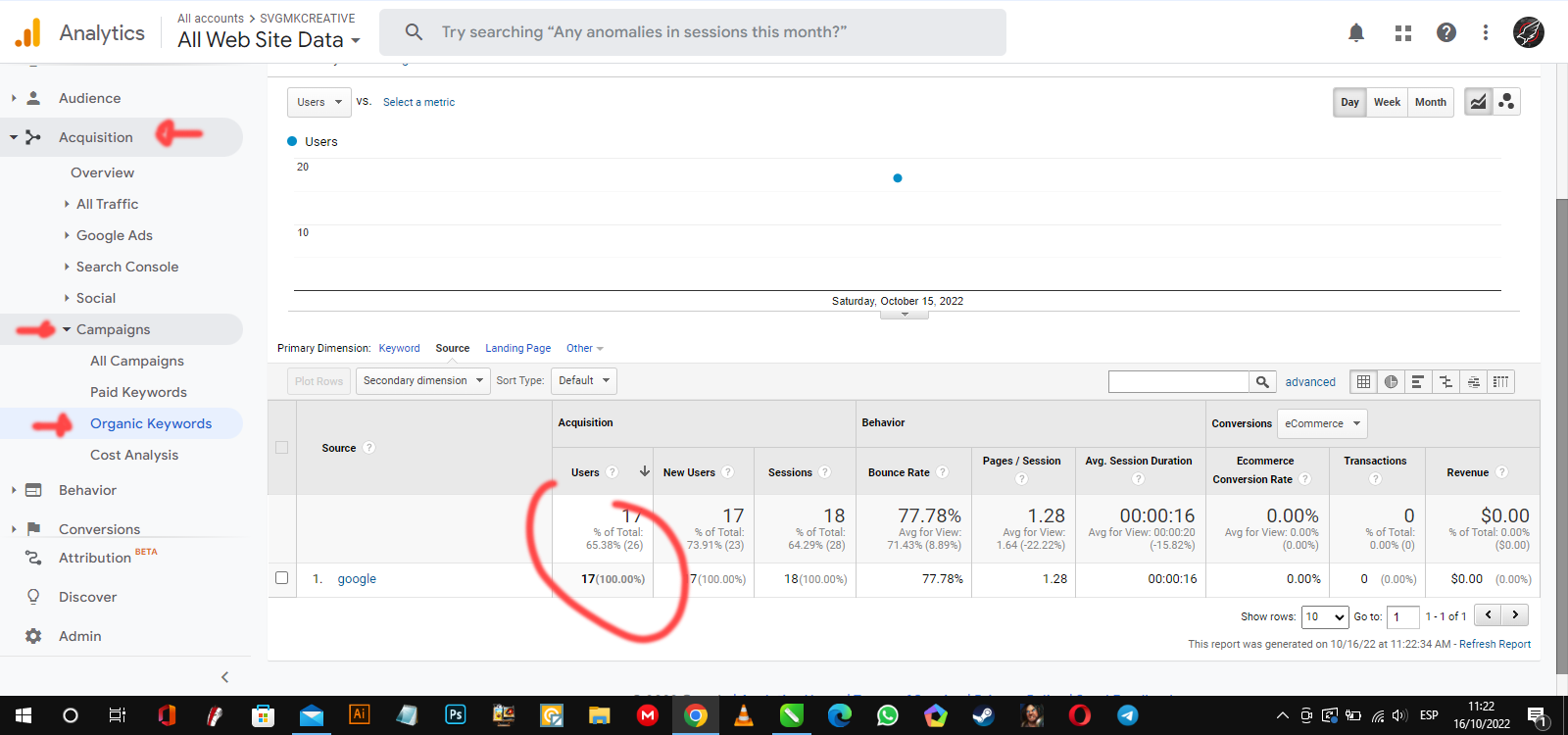 I am attaching a current image from Google Analytics of my visits since October 15, 2022, which did not get any sales. And another image where there were supposedly visits but they were False and I didn't get sales either.