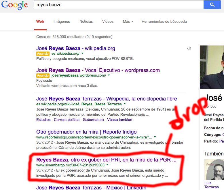 I need remove a result from search list. The result link appears at first p...